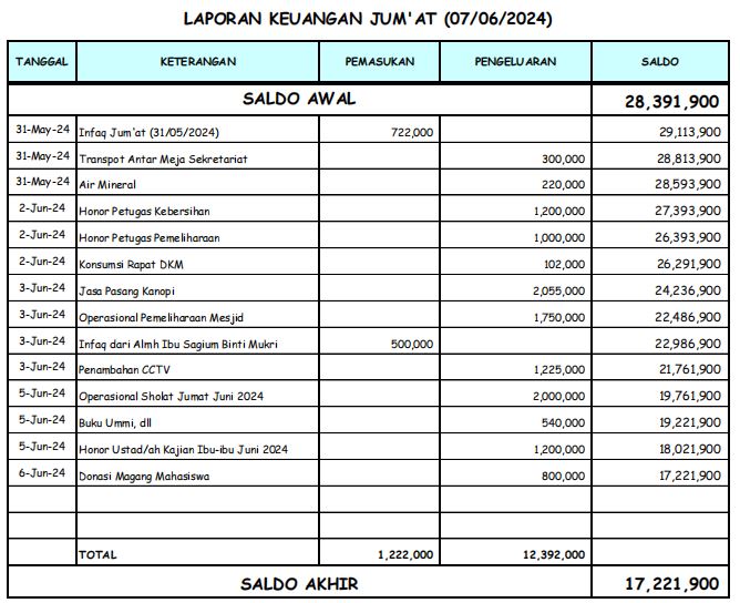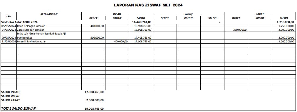 Laporan Keuangan ZISWAF Periode Mei 2024